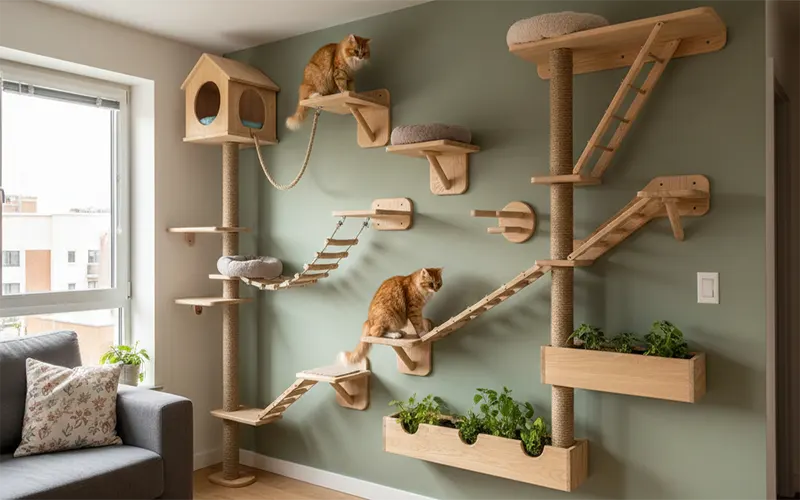 DIY vertical wall shelving ideas for small apartment cat enrichment